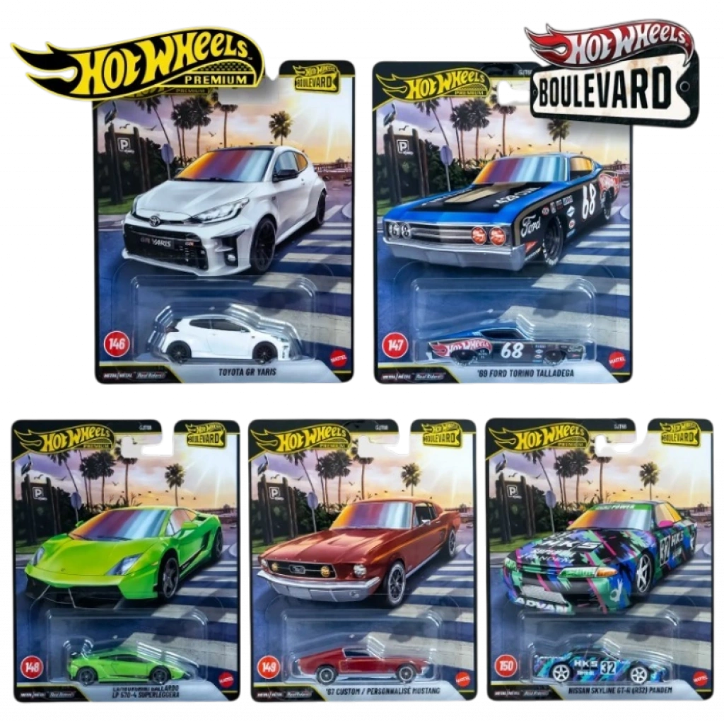 Koleksiyonerlerin merakla beklediği Hot Wheels Boulevard serisinin bu özel 5'li paketi, otomobil dünyasının farklı segmentlerinden efsaneleşmiş modelleri sunuyor. Her bir araç, Real Riders kauçuk lastikler ve Metal/Metal gövde yapısı ile Premium standartlarda üretilmiştir. Bu set; modern spor otomobillerden klasik Amerikan kaslı araçlarına ve özel modifiyeli JDM efsanelerine kadar geniş bir yelpazeyi kapsar.