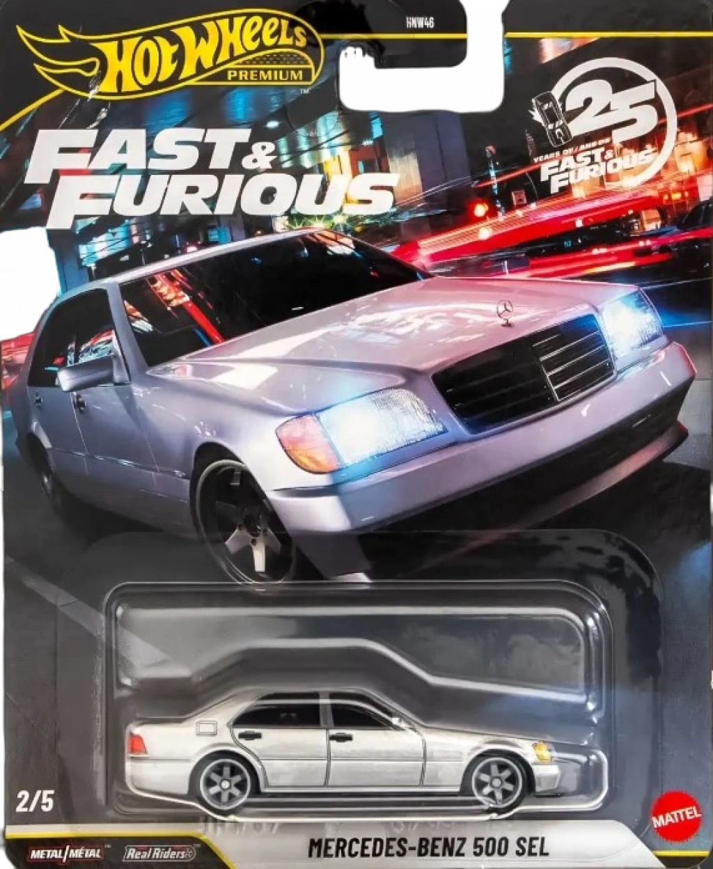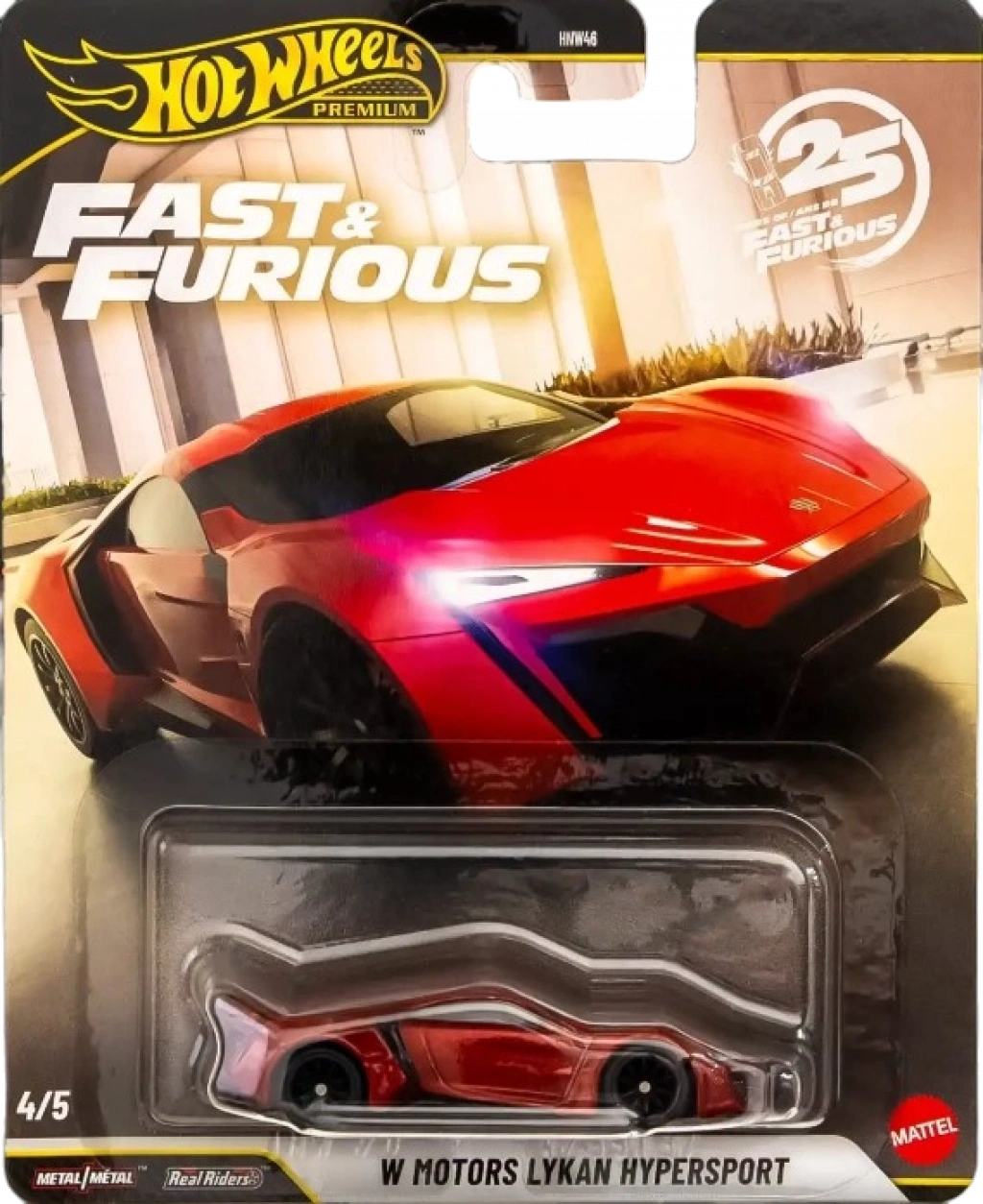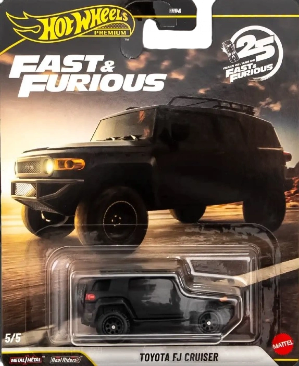 Hot Wheels Premium Fast & Furious 25 Years 5 Araçlık Set HNW46-979N, Fast & Furious film serisinin 25. yılına özel olarak hazırlanan, ikonik otomobilleri bir araya getiren premium bir koleksiyon setidir. Hot Wheels’in Premium segmentine ait olan bu set, 1:64 ölçekli ve metal gövdeli beş farklı model arabadan oluşur.