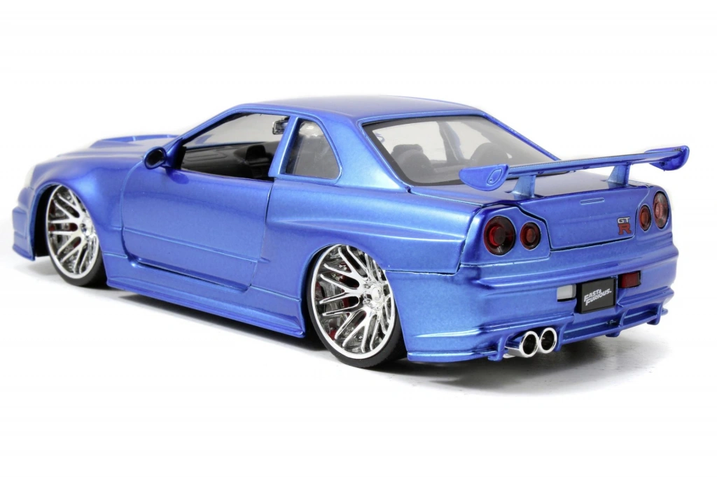 Jada’nın 1/24 ölçek üretimi; aracın film replikası detaylarını ve R34’ün ikonik tasarımını koleksiyon seviyesinde sunarak vitrin sergilemelerinde dikkat çeken bir film otomobili modeli oluşturur.