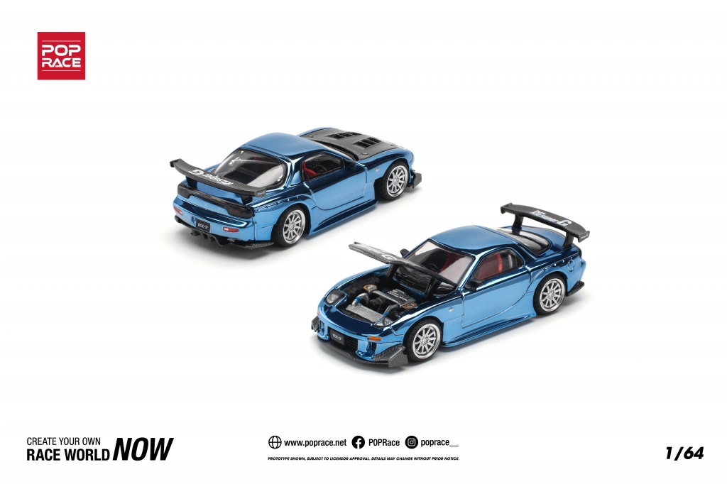 Pop Race 1/64 Mazda RX7 RE-Amemiya Widebody Blue Chorme