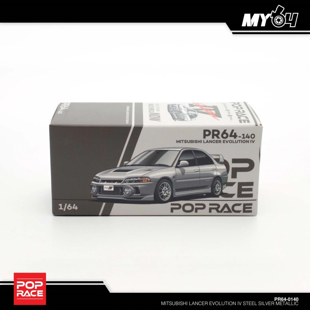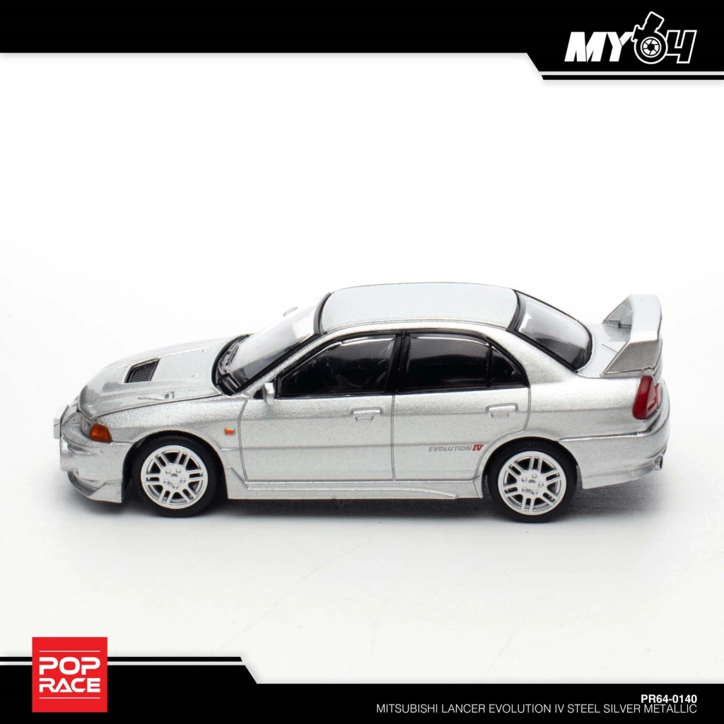 Pop Race 1/64 Mitsubishi Lancer Evolution IV – Steel Silver Metallic – Diecast Model Araba